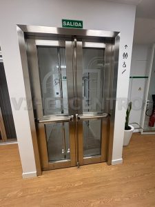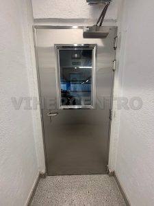 VIHERCENTRO ha suministrado para una obra de un Edificio de Oficinas en Madrid Puertas Cortafuegos Ei60 de 1 Hoja Galvanizadas, Puertas Cortafuegos E60 de 2 Hojas Galvanizadas, con 4 Bisagras, Mirilla Cortafuegos Rectangular de 450X750, con Muelles de Brazo color Plata y Barras Antipánico tipo «Toallero» Negro – tipo Aluminio. Puertas Cortafuegos Ei60 de 1 Hoja de Acero Inoxidable con 4 Bisagras Inoxidables y Mirilla Rectangular de 450X750, con Abrepuertas Eléctrico para Control de Accesos, Muelle de Brazo de Acero Inoxidable y Barra Antipánico tipo «Touch» PVD-Inox. Puertas Cortafuegos de Vidrio Interior Ei60 con Perfilería de Acero Inoxidable en 1 y 2 Hojas, con 5 Bisagras, Fajín Central, Grampón Eléctrico para Control de Accesos, Tirador Vertical en Hoja Activa, Barra Antipánico tipo «Touch» PVD – Inox, Muelles y Conjunto de Muelles con Selector incorporado de Guía en Acero Inox.